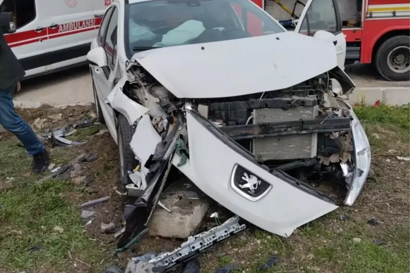 Çarpışmanın etkisiyle savrulan araçlar refüje çıktı.
