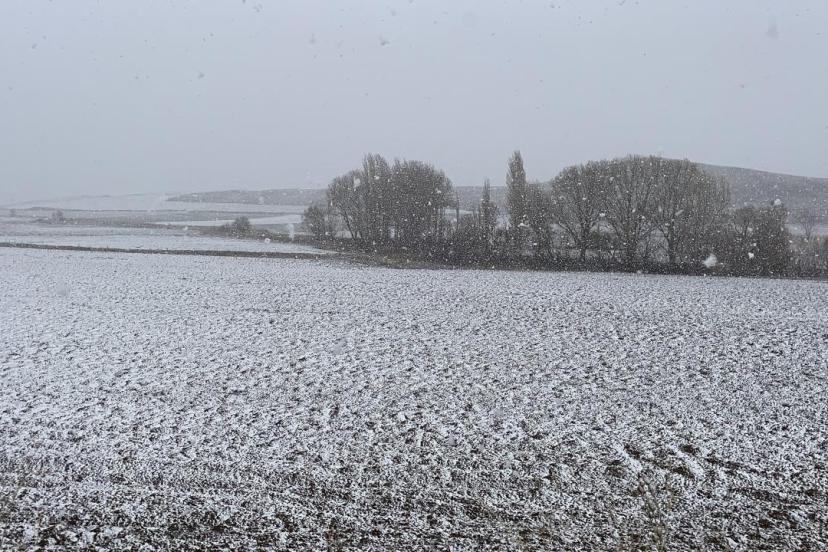Sisin de etkili olduğu bölgede, yağışla birlikte tarım arazileri beyaza büründü.