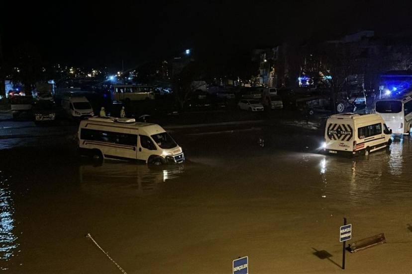 Geçen hafta yaşanan taşkında kapatılan yolun çevresi de suyla doldu.