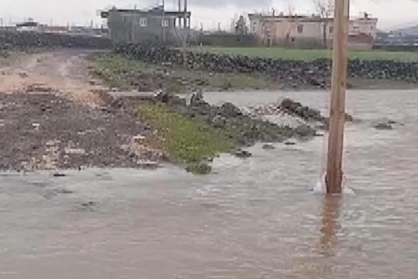 Diyarbakır’ın Çınar ilçesinde sağanak hayatı olumsuz etkiledi. Kuvvetli yağışla birlikte derenin taşması sonucu yol su altında kaldı.
