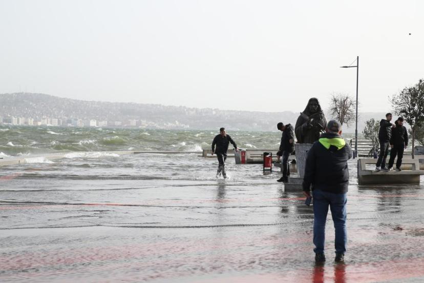 Karşıyaka Vapur İskelesi, Zübeyde Hanım Nikah Sarayı ile Karşıyaka Spor Kulübü Yelken Şube arasındaki bölgede deniz taşması nedeniyle araçlar yolda ilerlemekte güçlük çekti.