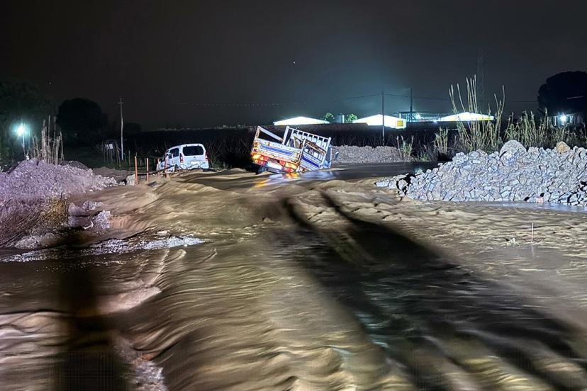 Manisa'da dere taştı, iki araç suda mahsur kaldı
