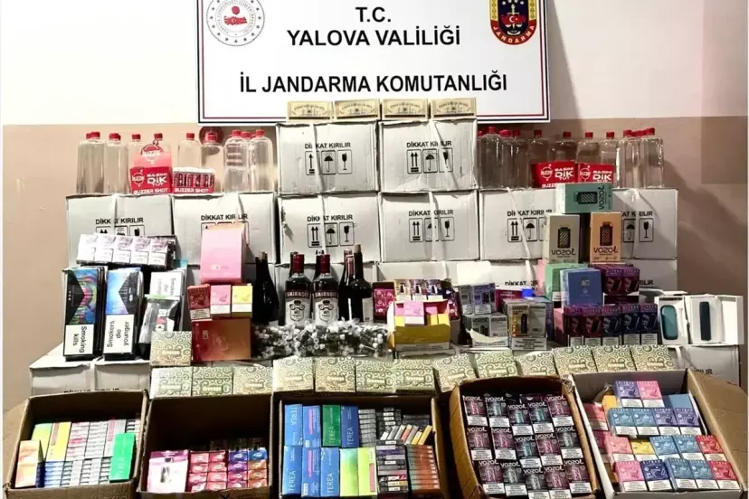 Yalova'da jandarma ekipleri, kaçak içki ve tütün satışı yapan 2 şüpheliyi gözaltına alırken, geniş çaplı bir operasyon gerçekleştirdi. Yapılan aramalarda çok sayıda kaçak ürün ele geçirildi.