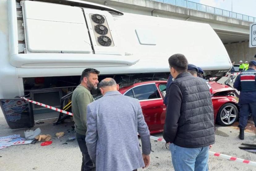 Halk otobüsü otomobilin üzerine devrildi: Çok sayıda yaralı var