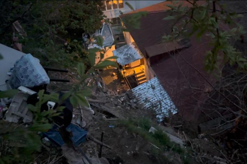 Yaklaşık 20 metre aşağıda bulunan evlerin üzerine topraklar düştü. Çevredekilerin ihbarı üzerine olay yerine polis, AFAD ve belediye ekipleri geldi.
