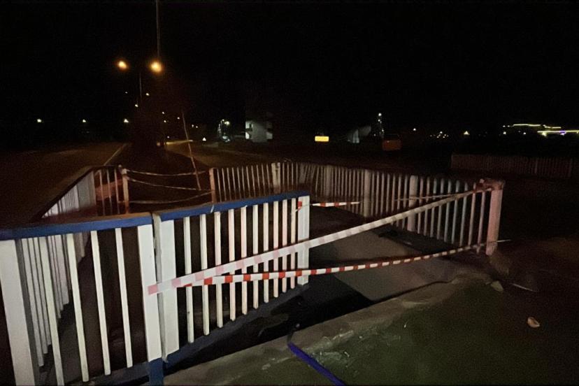 Orta refüje çarpan otomobil, demir parmaklıkları kırarak yaklaşık 5 metre yükseklikten sulama kanalına düştü.