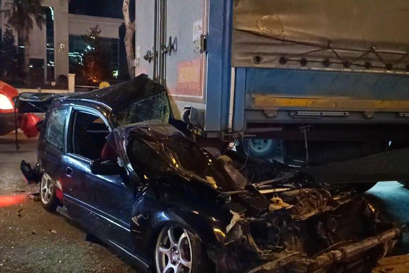 Tırın altına giren araç hurdaya döndü